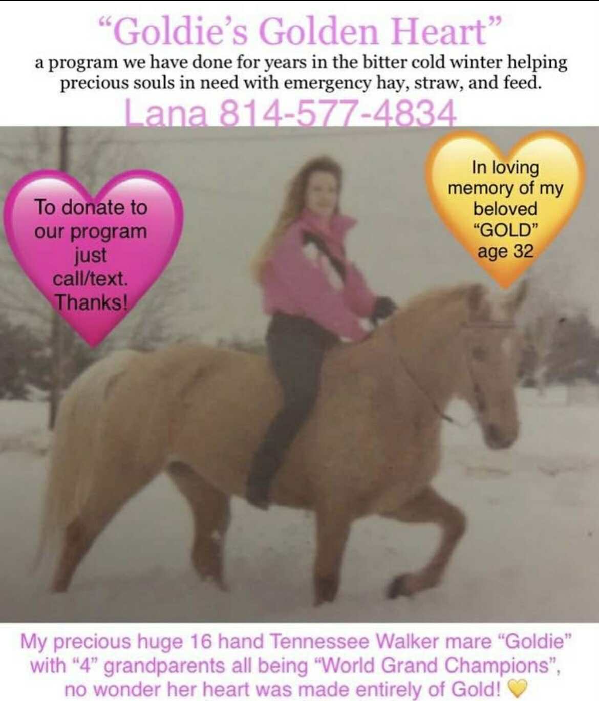 Join forces by sponsoring a rescue or supporting expansion needs (barn, arena, supplies).